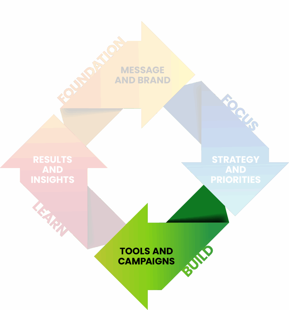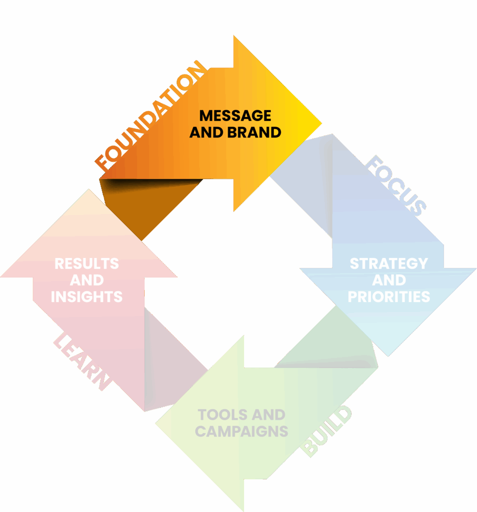You might come to us for a refreshed value proposition, a website that better reflects who you are now, or a quick gap analysis on why the right leads aren’t coming through. Wherever we start, we’ll use Foundation, Focus, Build, and Learn to make sure the work is grounded, practical, and doable for a resource-constrained team — and that it sets you up for what comes next